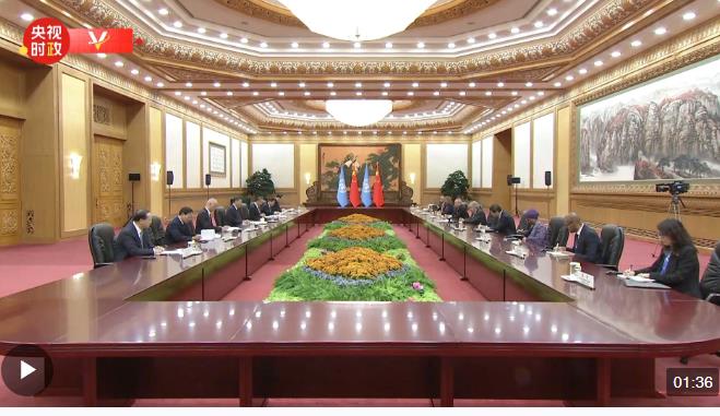 10月18日晚,國家主席習近平在人民大會堂會見來華出席第三屆“一帶一路”國際合作高峰論壇的聯(lián)合國秘書長古特雷斯?!?