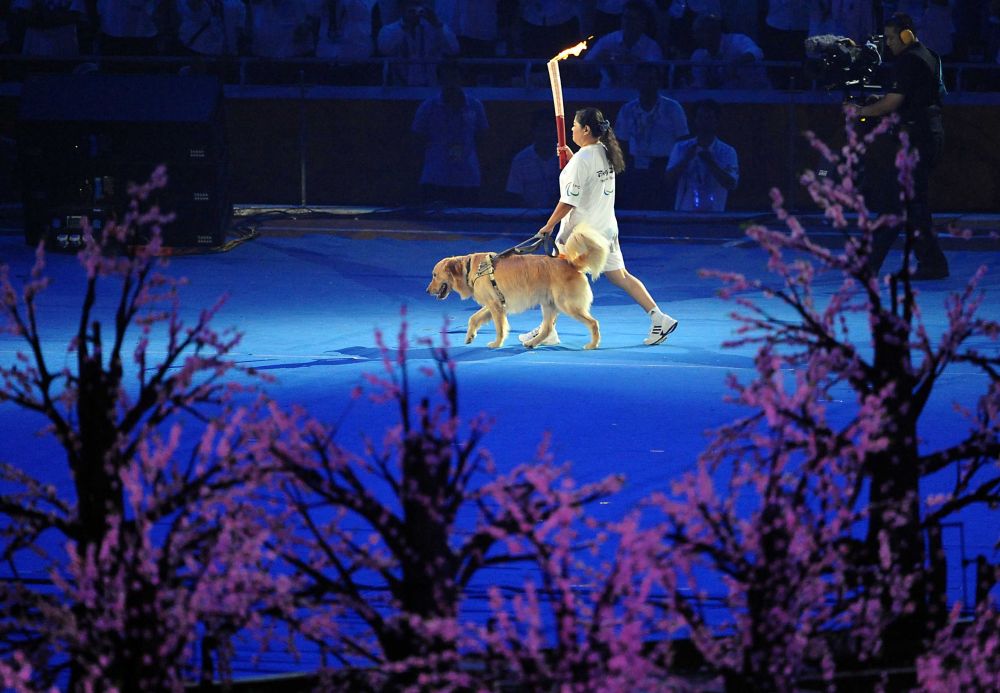 2008年9月6日,北京2008年殘奧會開幕式在國家體育場隆重舉行,火炬手平亞麗在進(jìn)行火炬?zhèn)鬟f。新華社記者王頌攝