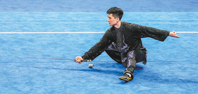 9月25日,武術男子太極拳太極劍全能決賽,中國體育代表團選手高浩楠在比賽中。
