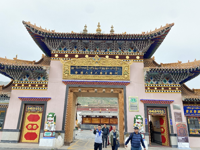 8月17日至20日,中國(guó)藏學(xué)研究中心副總干事李德成協(xié)同第七屆北京國(guó)際藏學(xué)研討會(huì)部分海外與會(huì)學(xué)者赴青海省進(jìn)行為期四天的調(diào)研。19日上午,調(diào)研組一行參觀了同仁市隆務(wù)鎮(zhèn)西山腳下的隆務(wù)寺。隆務(wù)寺寺管會(huì)主任華太陪同參觀。隆務(wù)寺,藏語(yǔ)為“ ”,意為“隆務(wù)大寺大樂(lè)法輪洲”,是一座元、明時(shí)期的藏傳佛教寺廟,為典型的藏漢合壁式建筑,其飛檐斗拱與堡式紅墻融為一體,琉璃瓦與鍍金寶瓶交相輝映,是我國(guó)各民族交往交流交融的歷史見(jiàn)證。