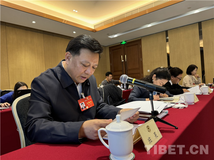 圖為全國政協(xié)委員,青海省委常委、統(tǒng)戰(zhàn)部部長班果在全國兩會(huì)期間參加小組會(huì)議