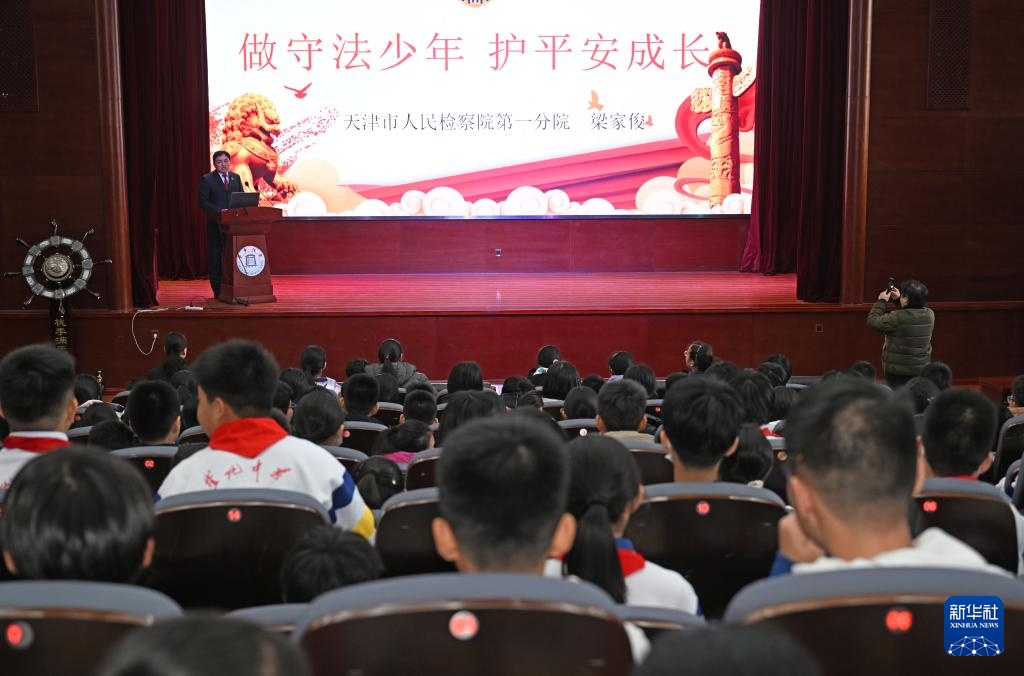 12月3日,天津市人民檢察院第一分院檢察干警向天津市南開區(qū)崇化中學(xué)學(xué)生普及憲法知識。