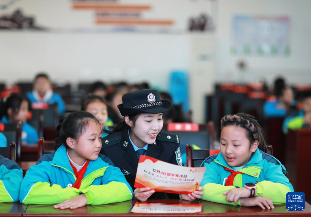 12月2日,民警在貴州省赤水市第二小學(xué)為學(xué)生普及憲法知識。