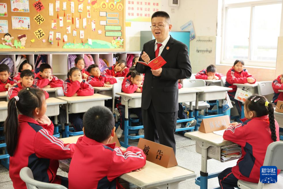 12月3日,貴州省銅仁市玉屏侗族自治縣人民檢察院的檢察干警在玉屏侗族自治縣第二小學(xué)給學(xué)生普及憲法知識。