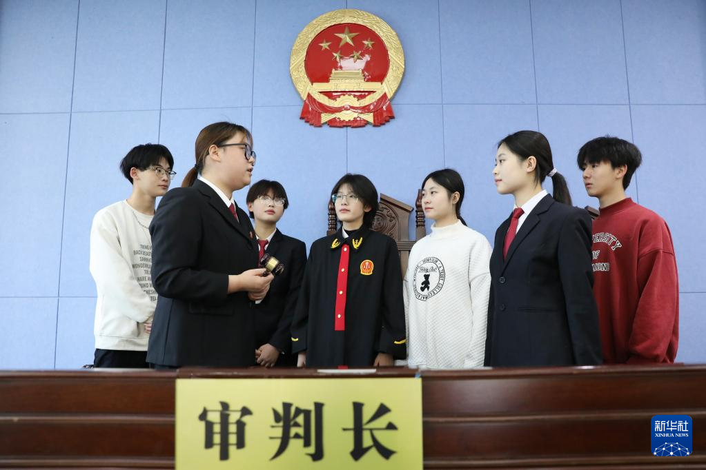 12月3日,河南省焦作市溫縣人民法院法官職雨潔為溫縣職教中心學(xué)生講解法槌的作用。