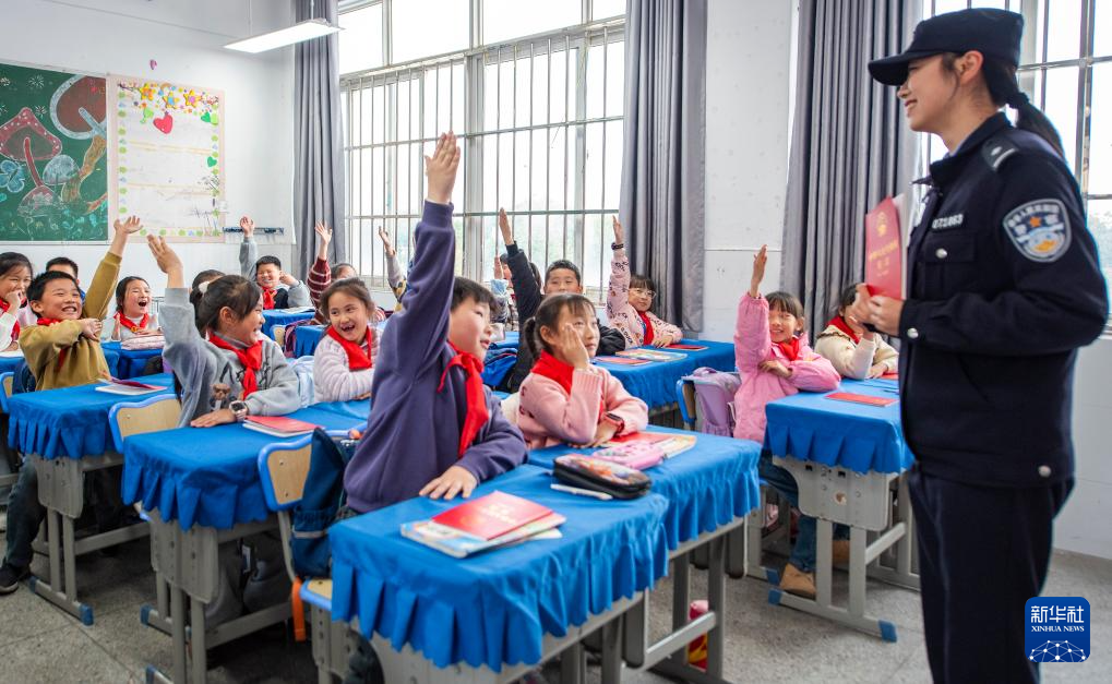 12月3日,在安徽省蕪湖市繁昌區(qū)孫村鎮(zhèn)中心小學(xué),民警為小學(xué)生講解憲法知識。