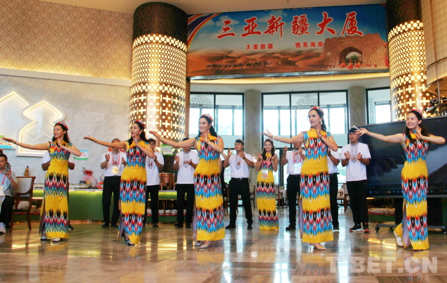 中國(guó)西藏網(wǎng)訊 精彩的傳統(tǒng)武術(shù)、悠揚(yáng)的歌聲、優(yōu)美的舞蹈……一陣陣掌聲、笑聲、歡呼聲從新疆代表團(tuán)駐地海南三亞新疆大廈傳出。11月27日,新疆代表團(tuán)邀請(qǐng)湖南、云南、黑龍江代表團(tuán)來到駐地舉行主題為“交各民族好朋友”的聯(lián)誼活動(dòng)。
