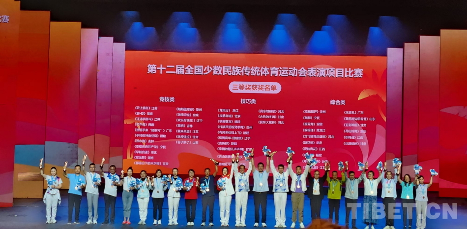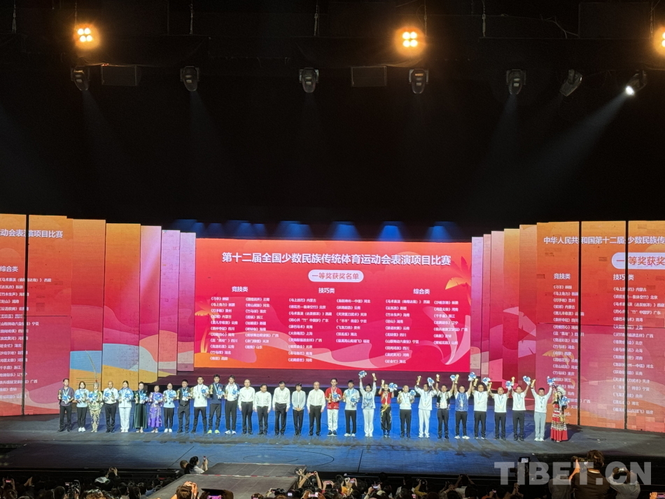 圖為第十二屆全國少數(shù)民族傳統(tǒng)體育運(yùn)動(dòng)會(huì)表演項(xiàng)目頒獎(jiǎng)晚會(huì)現(xiàn)場(chǎng) 西藏自治區(qū)體育局供圖