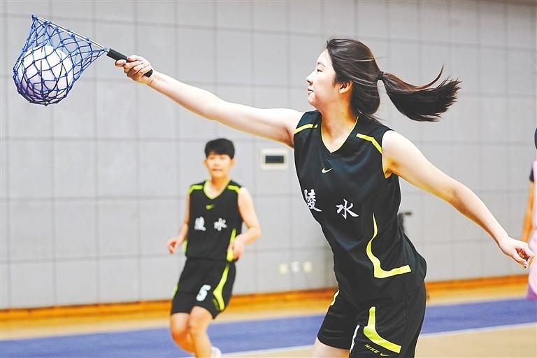 珍珠球,這個聽起來頗為玲瓏秀氣的競賽項(xiàng)目,實(shí)際上并不像它的名字那般美麗溫婉。比賽中,運(yùn)動員需要不停地運(yùn)用加速沖刺、急停、轉(zhuǎn)身、變向變速、突破過人等身體動作,配合快節(jié)奏的攻防戰(zhàn)術(shù),對運(yùn)動員的速度、力量、耐力以及協(xié)調(diào)柔韌性等方面都要求極高,具有很強(qiáng)的對抗性和觀賞性。
