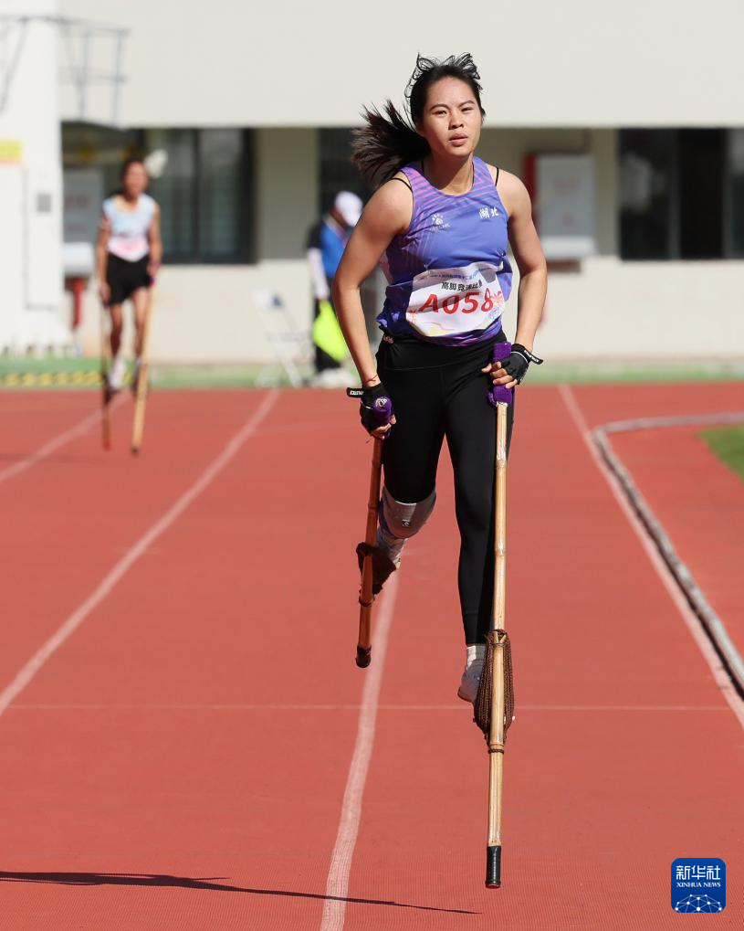 當(dāng)日,第十二屆全國(guó)少數(shù)民族傳統(tǒng)體育運(yùn)動(dòng)會(huì)高腳競(jìng)速女子400米復(fù)賽在海南省三亞市舉行。
