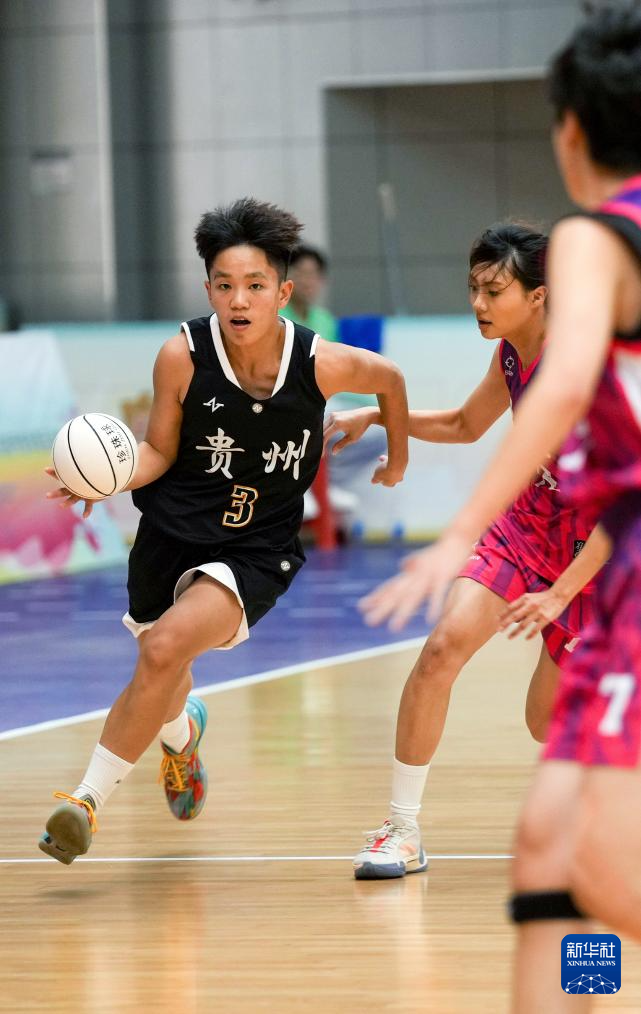 11月27日,貴州隊球員陳奕亦(左)在比賽中運球。最終,貴州隊47比45戰(zhàn)勝北京隊。