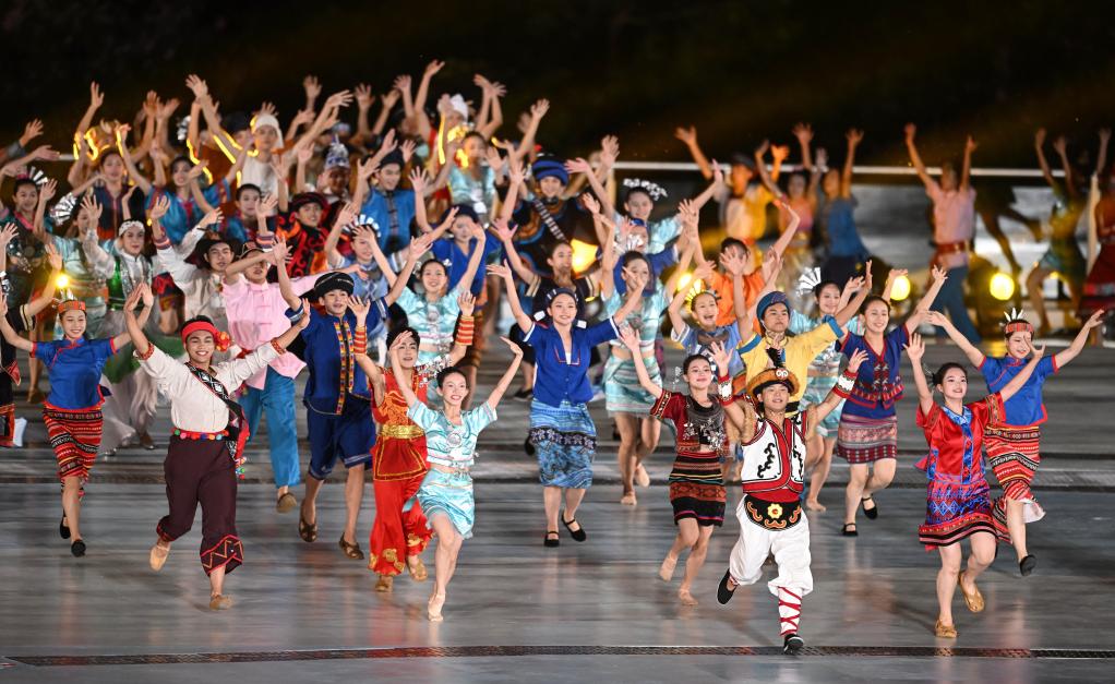 第十二屆全國少數(shù)民族傳統(tǒng)體育運(yùn)動會(以下簡稱“運(yùn)動會”)民族大聯(lián)歡活動26日在三亞舉行,在這個閃亮舞臺上,各族同胞展示了多姿多彩的民族文化,為三亞冬季旅游添彩。