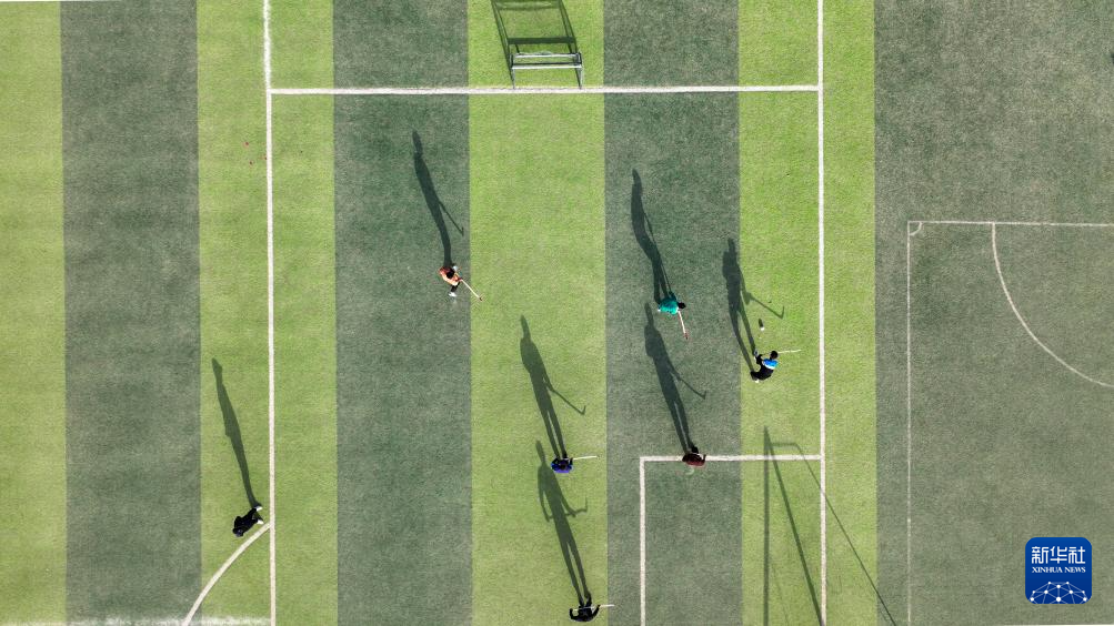 這是11月11日,在新疆于田縣體育場(chǎng),新疆麥熱球隊(duì)在訓(xùn)練中(無(wú)人機(jī)照片)。