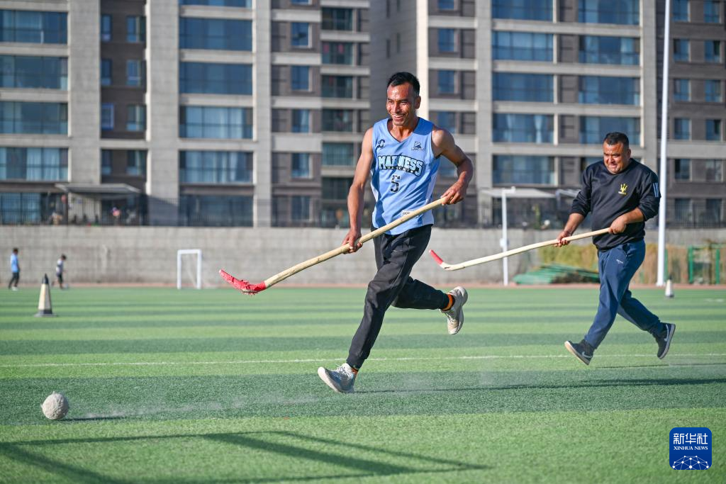 “麥熱球是一項(xiàng)非常古老的運(yùn)動(dòng),我爺爺?shù)臓敔斈菚r(shí)候就開(kāi)始玩。”阿卜杜拉艾孜則說(shuō)。麥熱球,又被稱為“維吾爾族曲棍球”,是在新疆和田地區(qū)廣泛流行的古老運(yùn)動(dòng)。規(guī)則類似于現(xiàn)代曲棍球,但是不設(shè)置守門(mén)員,把球打到對(duì)方球門(mén)里即為得分。2021年,這項(xiàng)運(yùn)動(dòng)(維吾爾族曲棍球)被正式列入國(guó)家級(jí)非物質(zhì)文化遺產(chǎn)代表性項(xiàng)目名錄。阿卜杜拉艾孜則從很小就開(kāi)始接觸麥熱球,在農(nóng)閑時(shí)他常常和兄弟們打上幾場(chǎng)麥熱球。他說(shuō):“小的時(shí)候,爸爸教會(huì)我打麥熱球,現(xiàn)在我要把這項(xiàng)運(yùn)動(dòng)帶來(lái)的快樂(lè)傳遞給更多人?!?/p>