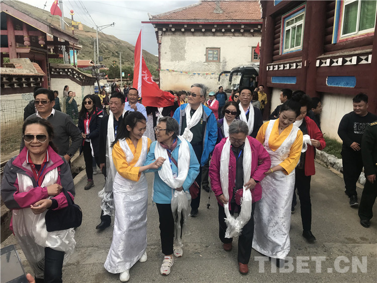 圖為走進蝦拉沱村的十八軍老戰(zhàn)士及十八軍后代。攝影:龍真多吉