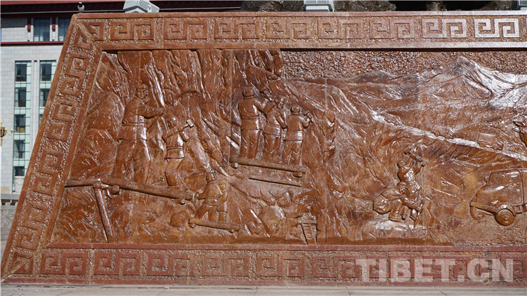 圖為“挺進(jìn)西藏”浮雕中描繪修筑“兩路”情景部分 攝影:張宇