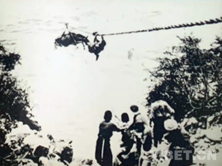 背夫們渡河時(shí)多采用溜索,這是古老的交通方式,用兩條或一條繩索,分別系于河流兩岸的樹木或其他固定物上。一頭高,一頭低,形成高低傾斜。溜索不僅可以溜渡人,而且還可以溜渡貨物、牲畜等。