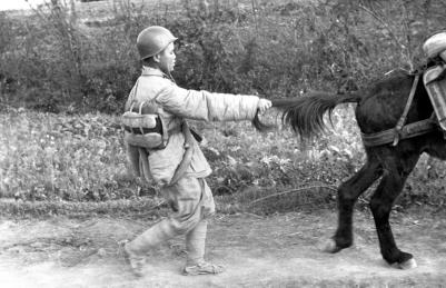 圖為解放軍第十八軍進藏,途中疲勞的小戰(zhàn)士揪著馬尾巴前進。袁克忠攝