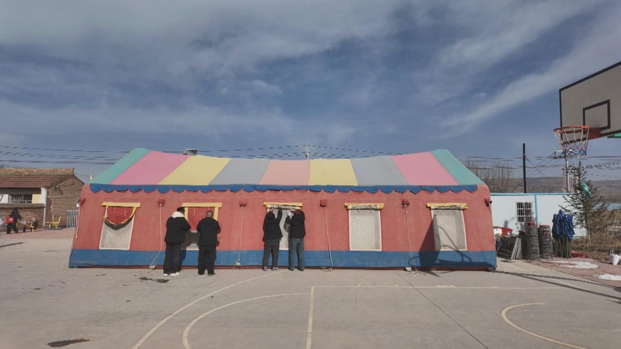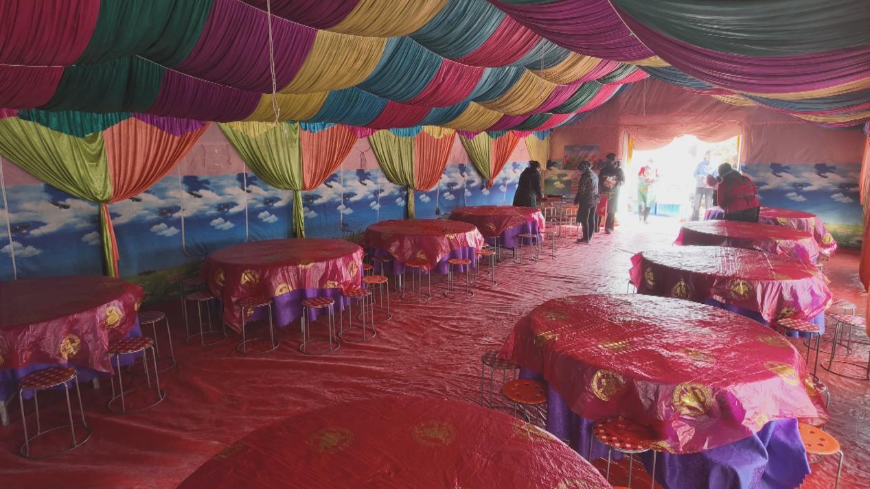 兩個(gè)小時(shí)后,導(dǎo)航準(zhǔn)確地把他們帶到了許溝村六組的村組活動(dòng)場。第二天的宴席就在這兒辦。水泥地面平整開闊,旁邊有一個(gè)搭建好的、可以提供電源的門房,爐火燒得正旺,是辦席的好場子。