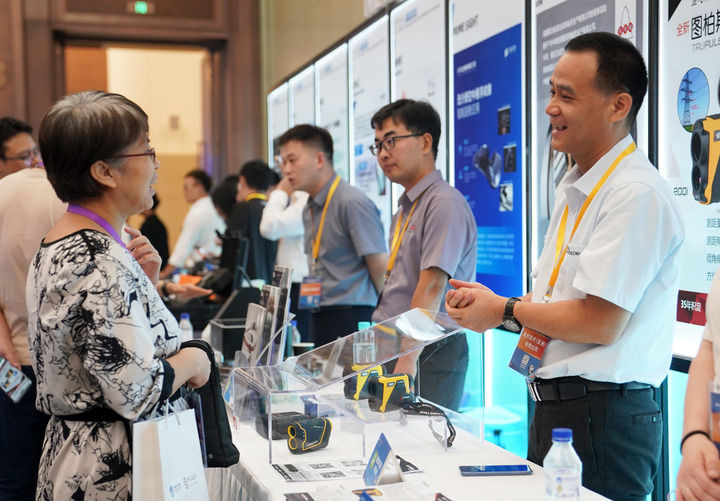2024年8月8日,在上海舉行的第七屆進(jìn)博會(huì)技術(shù)裝備、汽車展區(qū)展前供需對(duì)接會(huì)現(xiàn)場(chǎng),展商工作人員(右)向采購(gòu)商介紹企業(yè)產(chǎn)品。新華社發(fā)(陳浩明 攝)