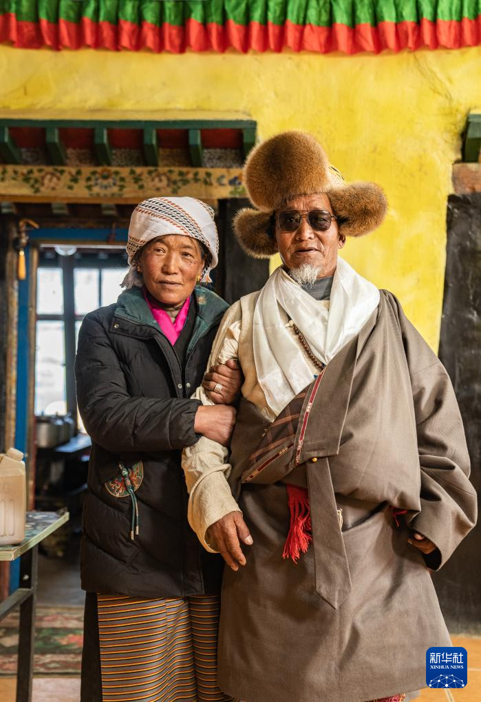 旺慶老人(右)和家人在家里合影(3月16日攝)。新華社記者 丁增尼達(dá) 攝