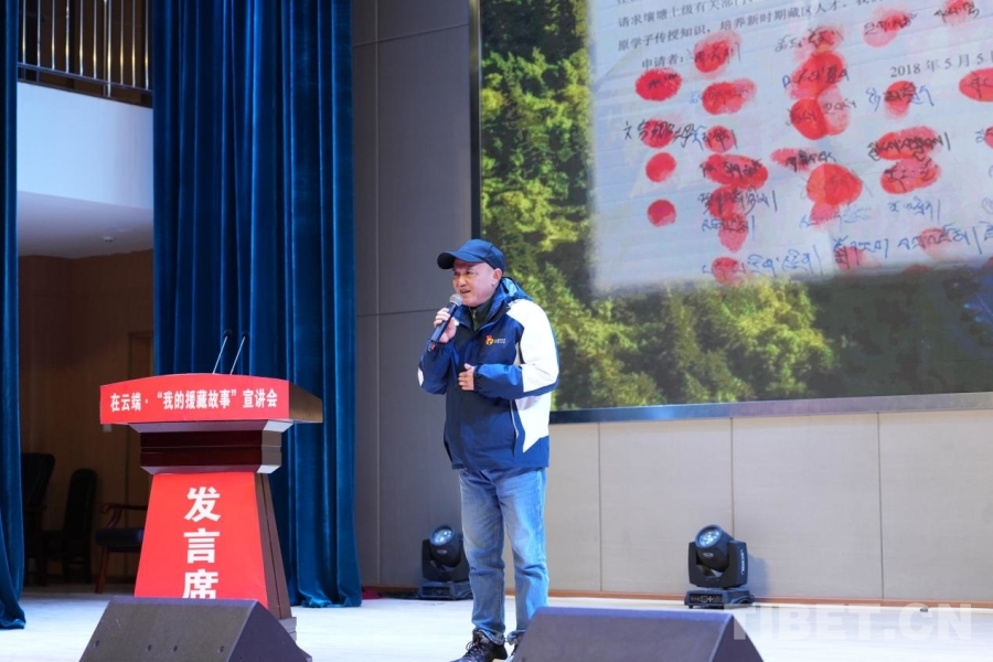 圖為龔仙彥在“在云端·我的援藏故事”宣講會現(xiàn)場宣講 攝影:邊子捷