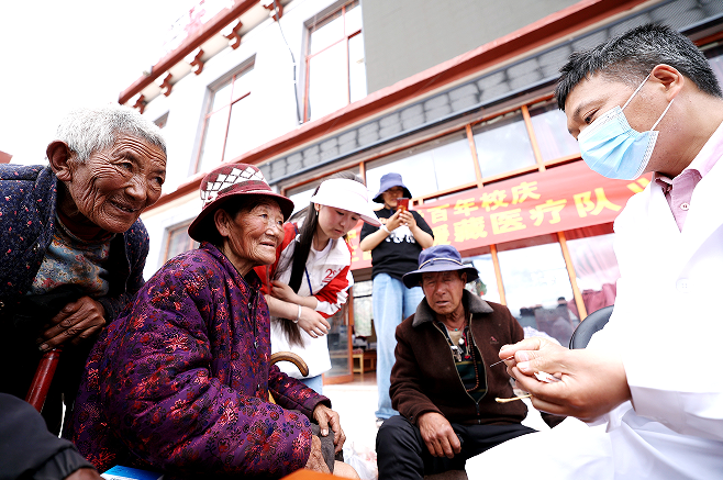 在察雅敬老院固定的每周義診中,招柏明醫(yī)生深刻地感受到黨和政府對(duì)孤寡老人無微不至的關(guān)懷,這也讓他作為一名普通黨員感受到肩上的責(zé)任,他告訴自己,要以身作則,把黨對(duì)藏族人民的恩情從自己手中的一根根銀針中傳遞出去。