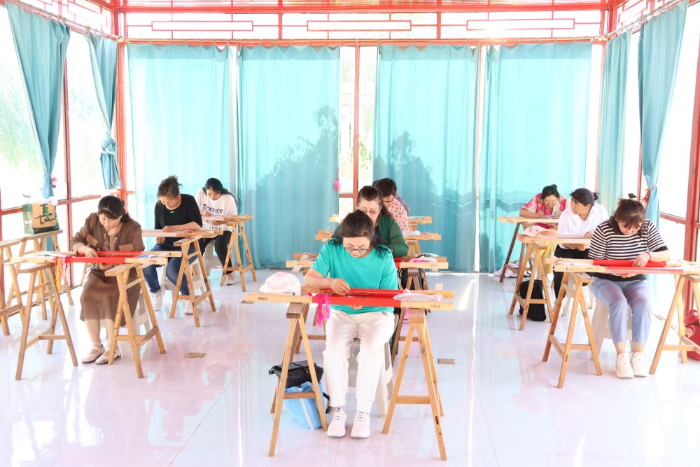 在內(nèi)蒙古自治區(qū)科爾沁右翼中旗蒙古族刺繡產(chǎn)業(yè)園車(chē)間內(nèi),由蒙古族、漢族、朝鮮族、達(dá)斡爾族繡工們坐在繡花撐子前各顯身手。