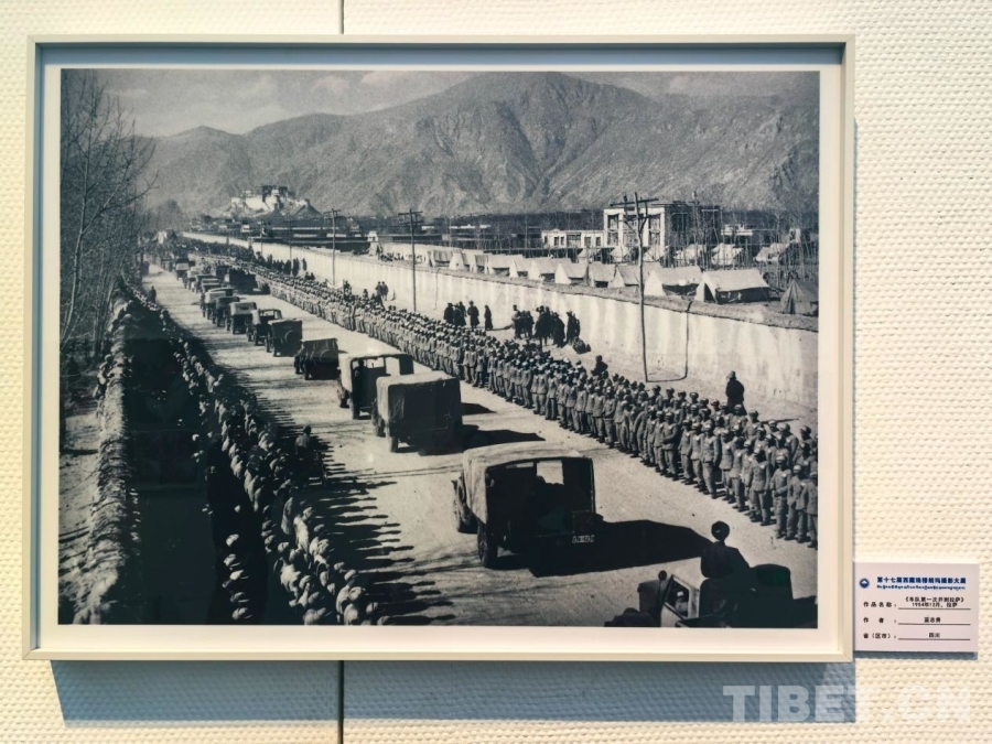 圖為第十七屆西藏珠穆朗瑪攝影大展所展出的《車隊(duì)第一次開到拉薩》(藍(lán)志貴 1954年12月拍攝)
