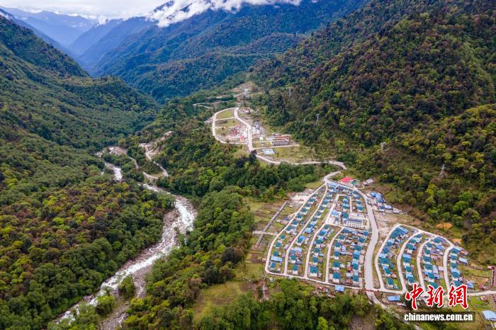 資料圖為2021年5月16日,航拍西藏墨脫縣扎墨公路沿線的貢日村,該村為舊扎墨公路80K處,是一處物資轉(zhuǎn)運(yùn)點(diǎn)。江飛波 攝