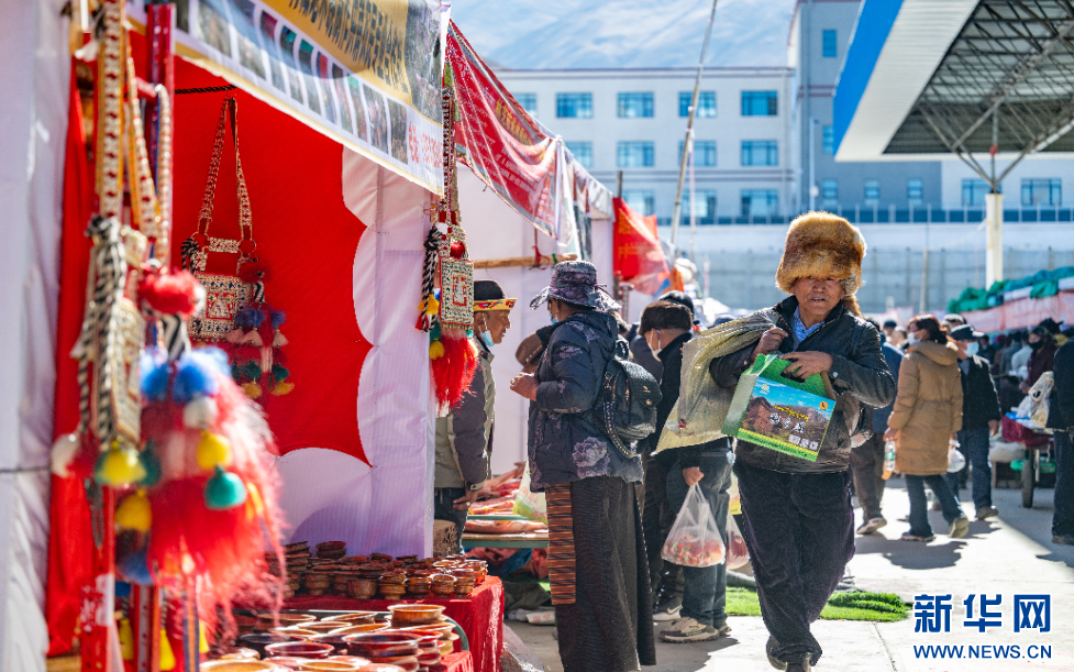 12月1日,市民在西藏自治區(qū)山南市第45屆雅礱物資交流會(huì)現(xiàn)場挑選商品。新華網(wǎng) 旦增努布 攝