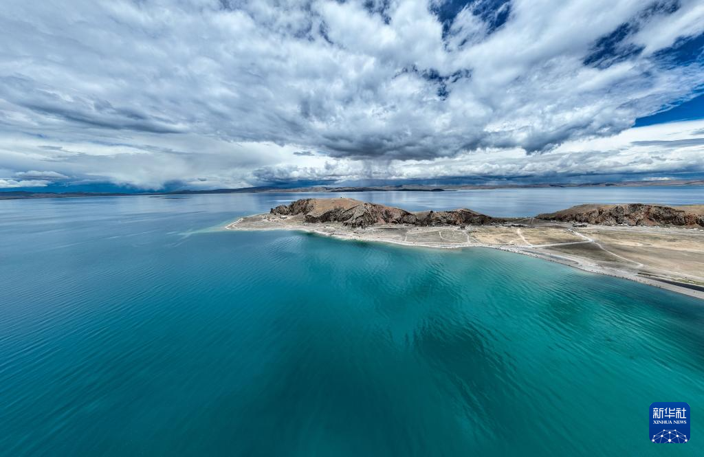 7月16日拍攝的納木錯(cuò)扎西島景區(qū)風(fēng)光(無(wú)人機(jī)照片)。新華社記者 晉美多吉 攝 ??