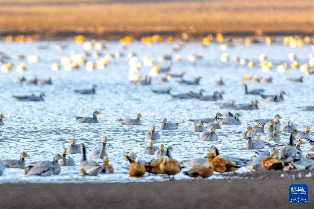 這是11月23日在西藏拉薩市林周縣拍攝的越冬候鳥(niǎo)。新華社記者 李鍵 攝