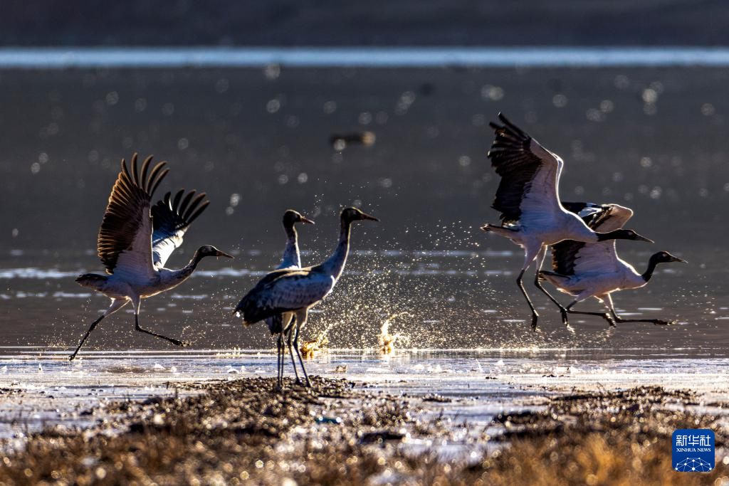 這是11月23日在西藏拉薩市林周縣拍攝的越冬候鳥(niǎo)。新華社記者 姜帆 攝