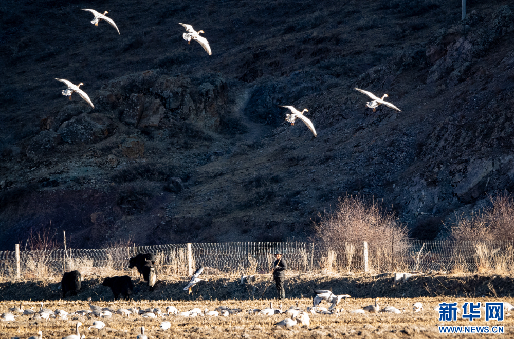 這是11月26日在西藏拉薩市林周縣境內(nèi)拍攝的候鳥。新華網(wǎng) 旦增努布 攝