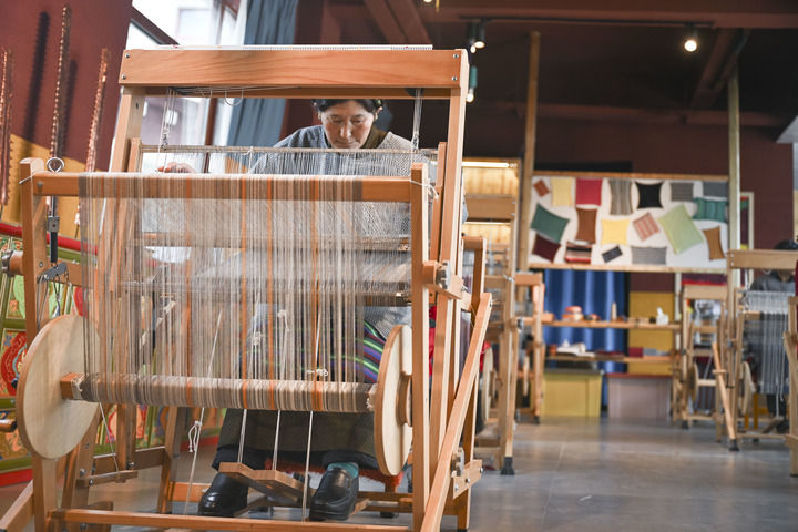 走進江孜縣班覺倫布村“阿佳格桑工坊”,木質織布機的沙沙聲此起彼伏。五彩斑斕的布匹間,“阿佳”們(藏語“大姐”之意)正專注地操作著機器。走近一問,原來這叫“氆氌”——一種傳統(tǒng)手工毛織品,迄今已有上千年歷史,是制作藏袍等民族服飾的主要材料。然而,隨著時代發(fā)展,由于產(chǎn)品單一、產(chǎn)量有限等原因,這項傳統(tǒng)技藝面臨嚴峻挑戰(zhàn)。