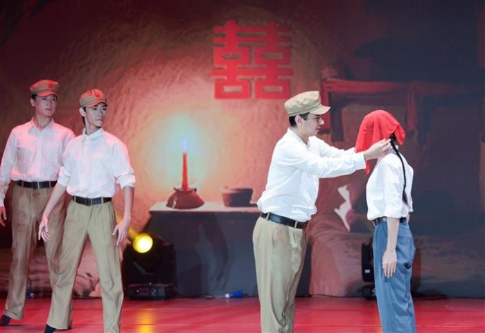 舞蹈《天山鑄芳華》再現(xiàn)兵團(tuán)軍墾戰(zhàn)士在地窩子里舉辦婚禮的溫情場(chǎng)景。