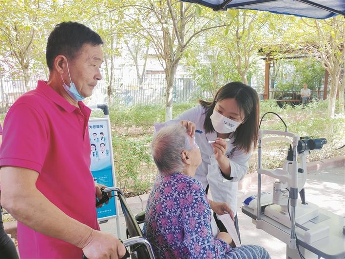 8月8日,“情暖兵團(tuán)·守護(hù)光明”公益項(xiàng)目醫(yī)療服務(wù)隊(duì)在十一師開展眼疾篩查活動。圖為醫(yī)療服務(wù)隊(duì)隊(duì)員為老人做眼部檢查。 兵團(tuán)日報全媒體記者 陳瓊 攝