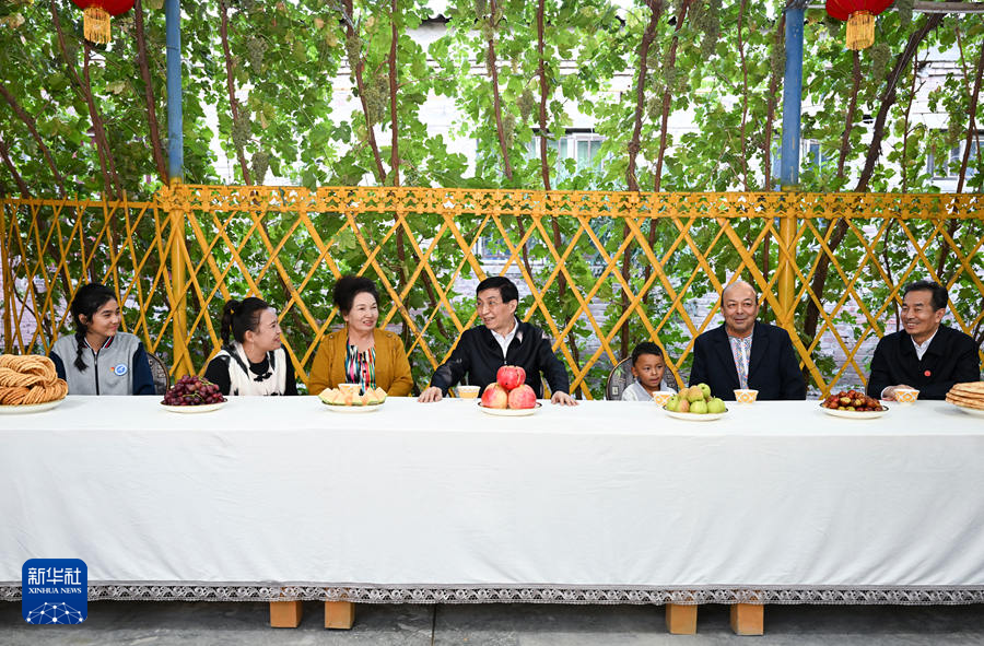 9月25日下午,受習近平總書記囑托,中共中央政治局常委、全國政協(xié)主席、中央代表團團長王滬寧帶領中央代表團部分成員在巴音郭楞蒙古自治州庫爾勒市看望慰問當?shù)馗髯甯刹咳罕?。這是王滬寧和中央代表團部分成員在庫爾勒市阿瓦提鄉(xiāng)吾夏克鐵熱克村了解鄉(xiāng)村產(chǎn)業(yè)發(fā)展和群眾生產(chǎn)生活情況。新華社記者 張領 攝