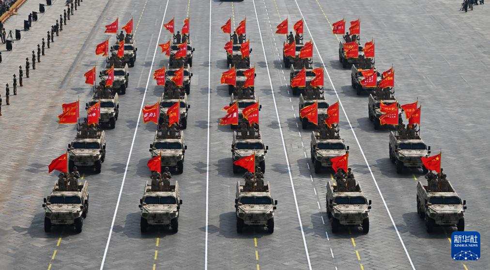 9月3日,紀念中國人民抗日戰(zhàn)爭暨世界反法西斯戰(zhàn)爭勝利80周年大會在北京隆重舉行。這是裝備方隊接受檢閱。