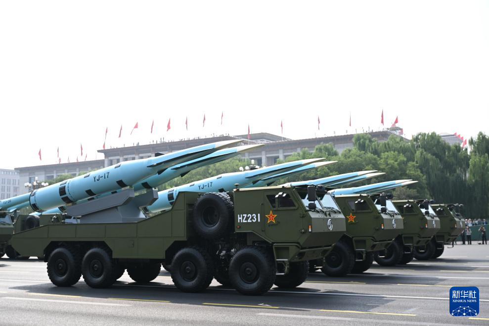 9月3日,紀念中國人民抗日戰(zhàn)爭暨世界反法西斯戰(zhàn)爭勝利80周年大會在北京隆重舉行。這是反艦導彈方隊接受檢閱。