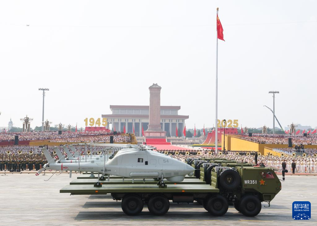 9月3日,紀念中國人民抗日戰(zhàn)爭暨世界反法西斯戰(zhàn)爭勝利80周年大會在北京隆重舉行。這是空中無人作戰(zhàn)方隊接受檢閱。