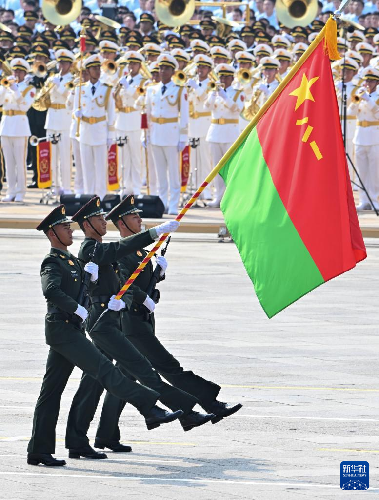 9月3日,紀念中國人民抗日戰(zhàn)爭暨世界反法西斯戰(zhàn)爭勝利80周年大會在北京隆重舉行。這是戰(zhàn)旗方隊接受檢閱。