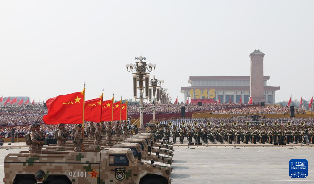 9月3日,紀念中國人民抗日戰(zhàn)爭暨世界反法西斯戰(zhàn)爭勝利80周年大會在北京隆重舉行。這是戰(zhàn)旗方隊和裝備方隊接受檢閱。