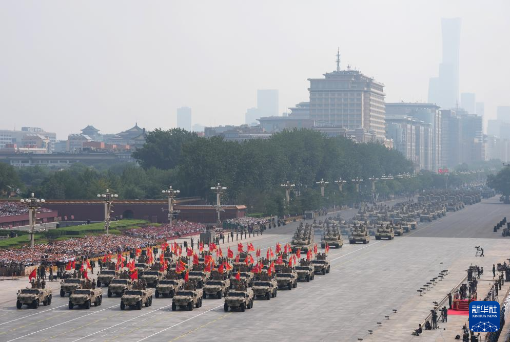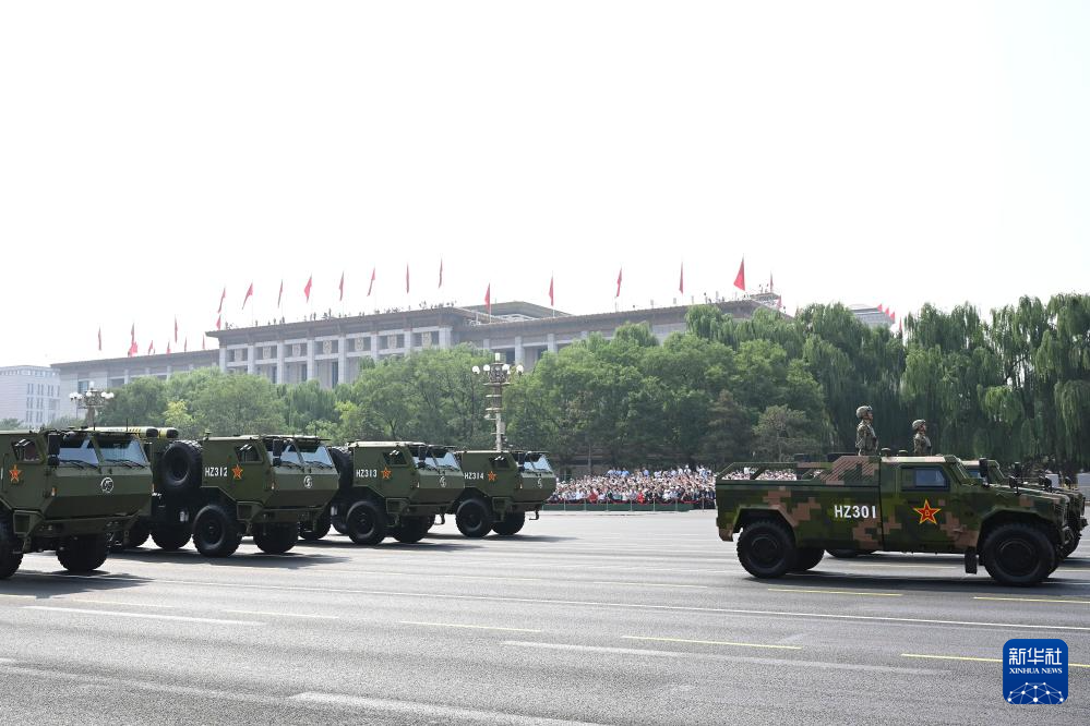 9月3日,紀念中國人民抗日戰(zhàn)爭暨世界反法西斯戰(zhàn)爭勝利80周年大會在北京隆重舉行。這是信息支援方隊通過天安門廣場。
