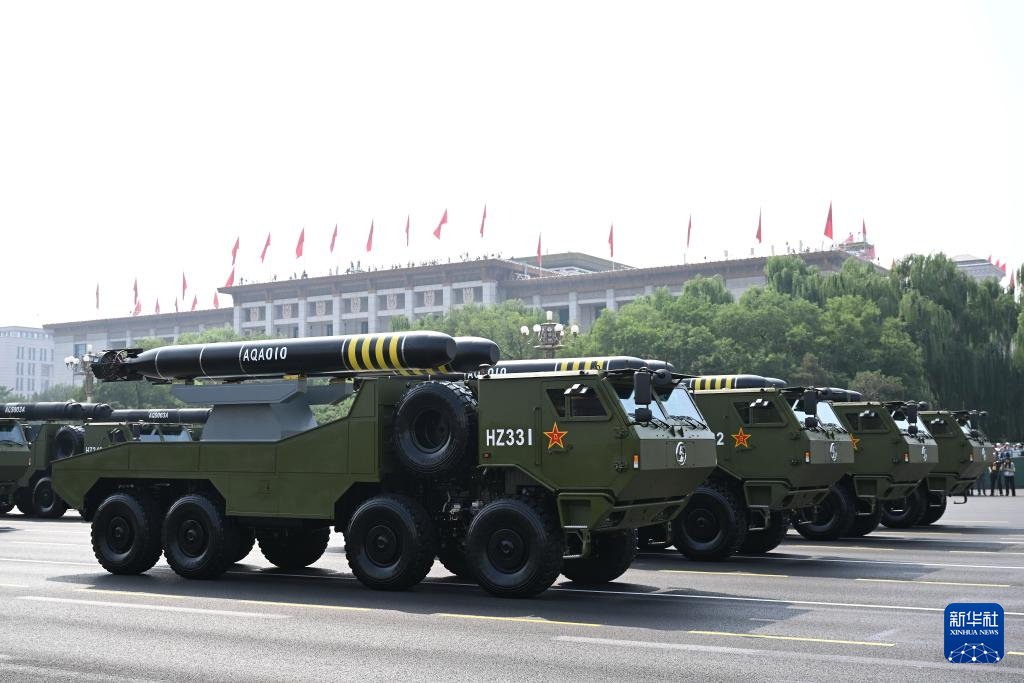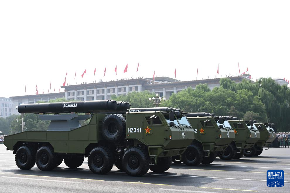 9月3日,紀念中國人民抗日戰(zhàn)爭暨世界反法西斯戰(zhàn)爭勝利80周年大會在北京隆重舉行。這是水下兵器方隊接受檢閱。