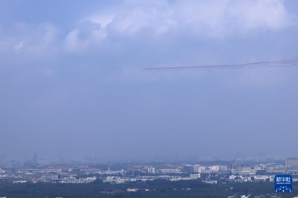 9月3日,紀念中國人民抗日戰(zhàn)爭暨世界反法西斯戰(zhàn)爭勝利80周年大會在北京隆重舉行。這是教練機梯隊飛過天安門廣場上空。