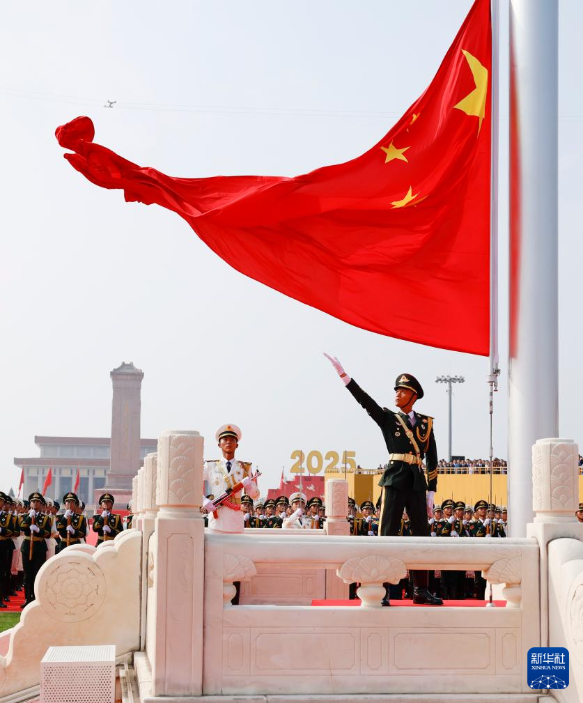 9月3日,紀念中國人民抗日戰(zhàn)爭暨世界反法西斯戰(zhàn)爭勝利80周年大會在北京隆重舉行。這是天安門廣場舉行隆重的升國旗儀式。