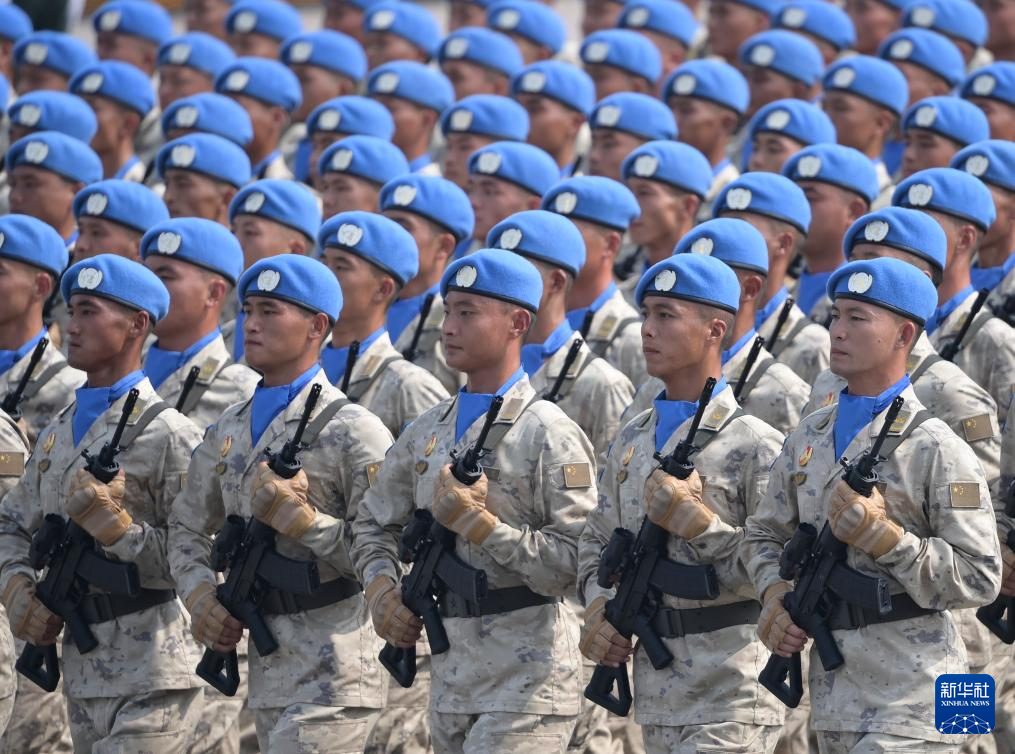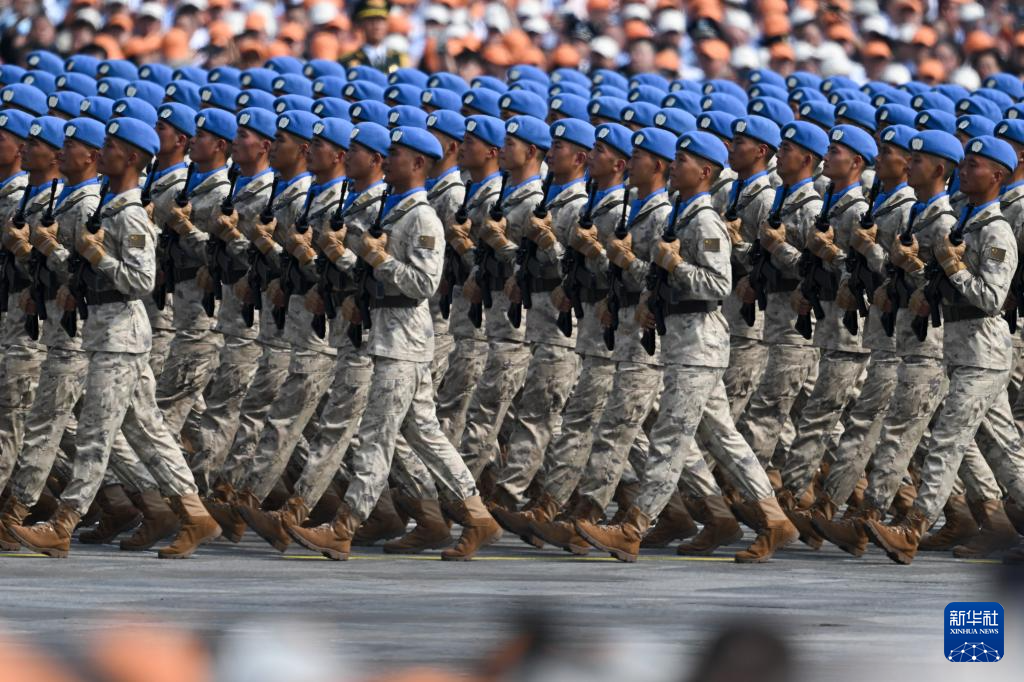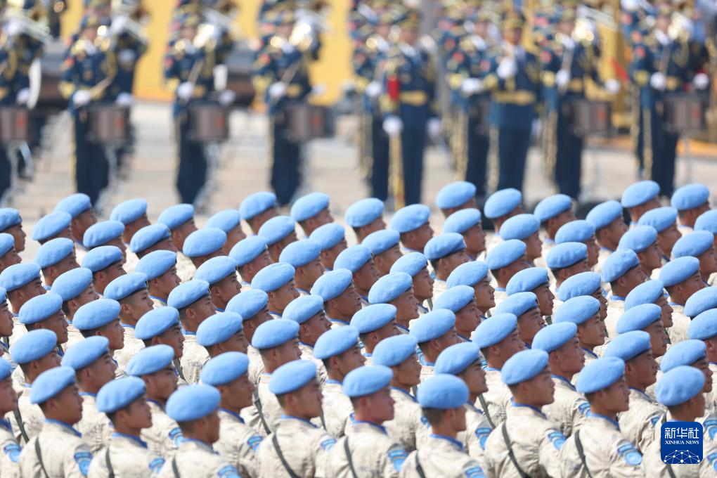 9月3日,紀(jì)念中國人民抗日戰(zhàn)爭暨世界反法西斯戰(zhàn)爭勝利80周年大會在北京隆重舉行。這是維和部隊方隊接受檢閱。