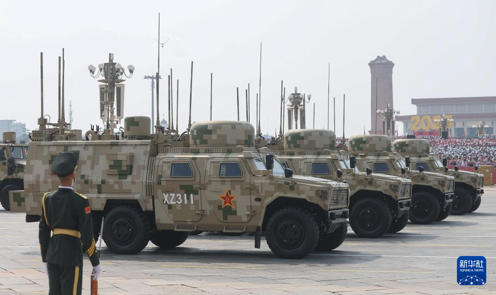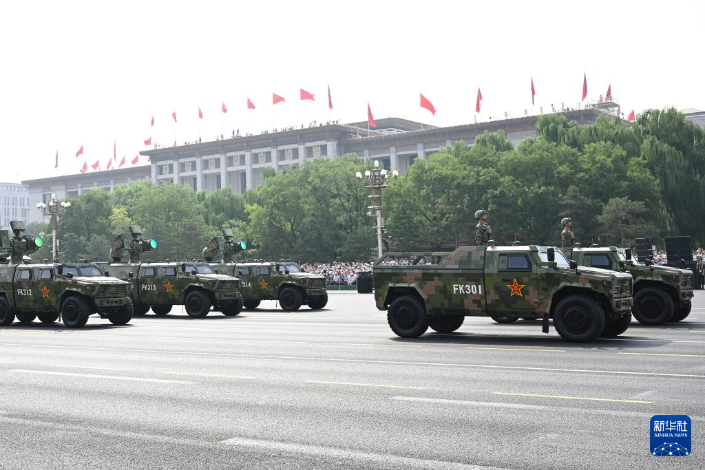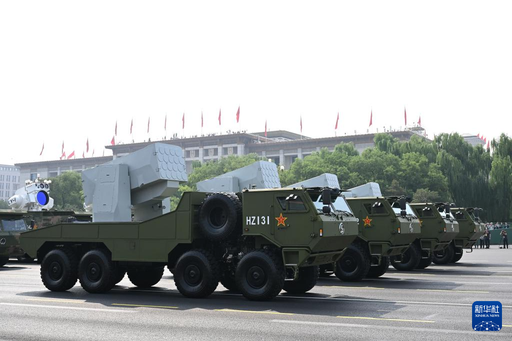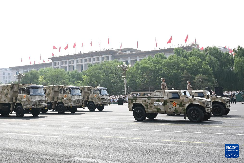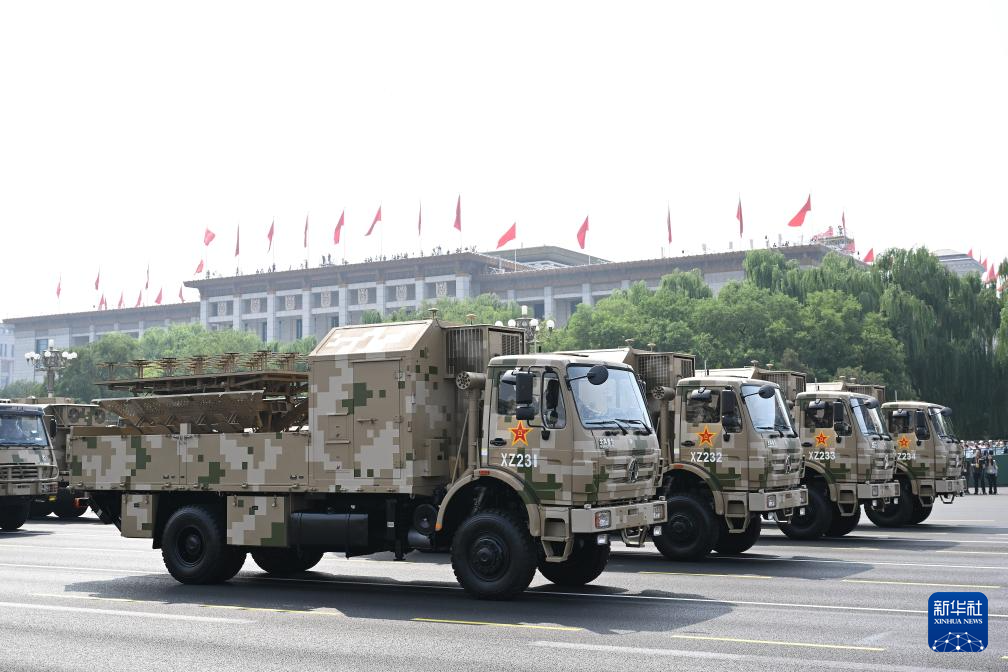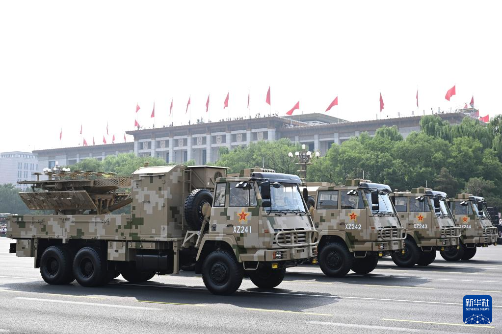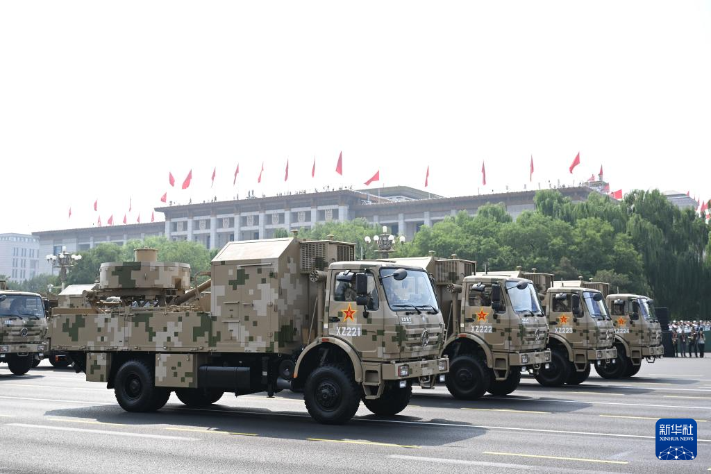 9月3日,紀(jì)念中國人民抗日戰(zhàn)爭暨世界反法西斯戰(zhàn)爭勝利80周年大會在北京隆重舉行。這是電子對抗方隊接受檢閱。